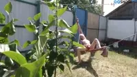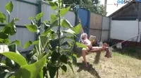 In a secluded outdoor hammock, the sultry blonde beauty takes advantage of her time alone with nature and embarks on a sensual, selfpleasure adventure.Surrounded by lush greenery and the soothing sound of rustling leaves, she decides to indulge in an intimate moment with herself, as her hand glides smoothly over her naked body, feeling every curve and exploring every inch with expert skill.With a deep breath, she focuses on the erotic tension building inside her as she thinks about the man she yearned for.Her mind fills with vivid images of their passionate lovemaking, causing her to squirm in the hammock.As she becomes more lost in her daydream, the sensation between her legs intensifies, demanding her full attention.Gazing at the beautiful scenery around her, she slides her hand lower, tracing intricate patterns on her delicate skin before finally dipping her fingers into her wet, aching cunt, eliciting an audible moan from her lips.With her free hand, she supports herself with one hand under her head and the other clutching tightly to her own flesh, urgently seeking the relief that only an orgasm can bring.Her movements grow more intense as the climax approaches, each stroke of her fingers against her throbbing pussy causing her heart rate to spike, her breathing becoming erratic.With her cunt dripping with arousal, she takes one last deep breath and surrenders herself completely to the exquisite pleasure that she is about to experience.In an uncontrollable frenzy of passion, her body tenses and shakes, her entire world focused on the waves of pleasure coursing through every inch of her being until her orgasm overcomes her in a crescendo of ecstasy unlike anything she has ever felt before.As she comes down from this euphoric high, she drifts back to reality, basking in the afterglow of her outdoor adventure with herself and nature.